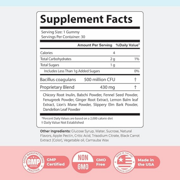 🌿 Supports Gut Health & Digestion: Formulated with 500 million CFU of Bacillus coagulans and a 430mg proprietary blend, these probiotic gummies help balance gut flora, improve digestion, and reduce bloating naturally.